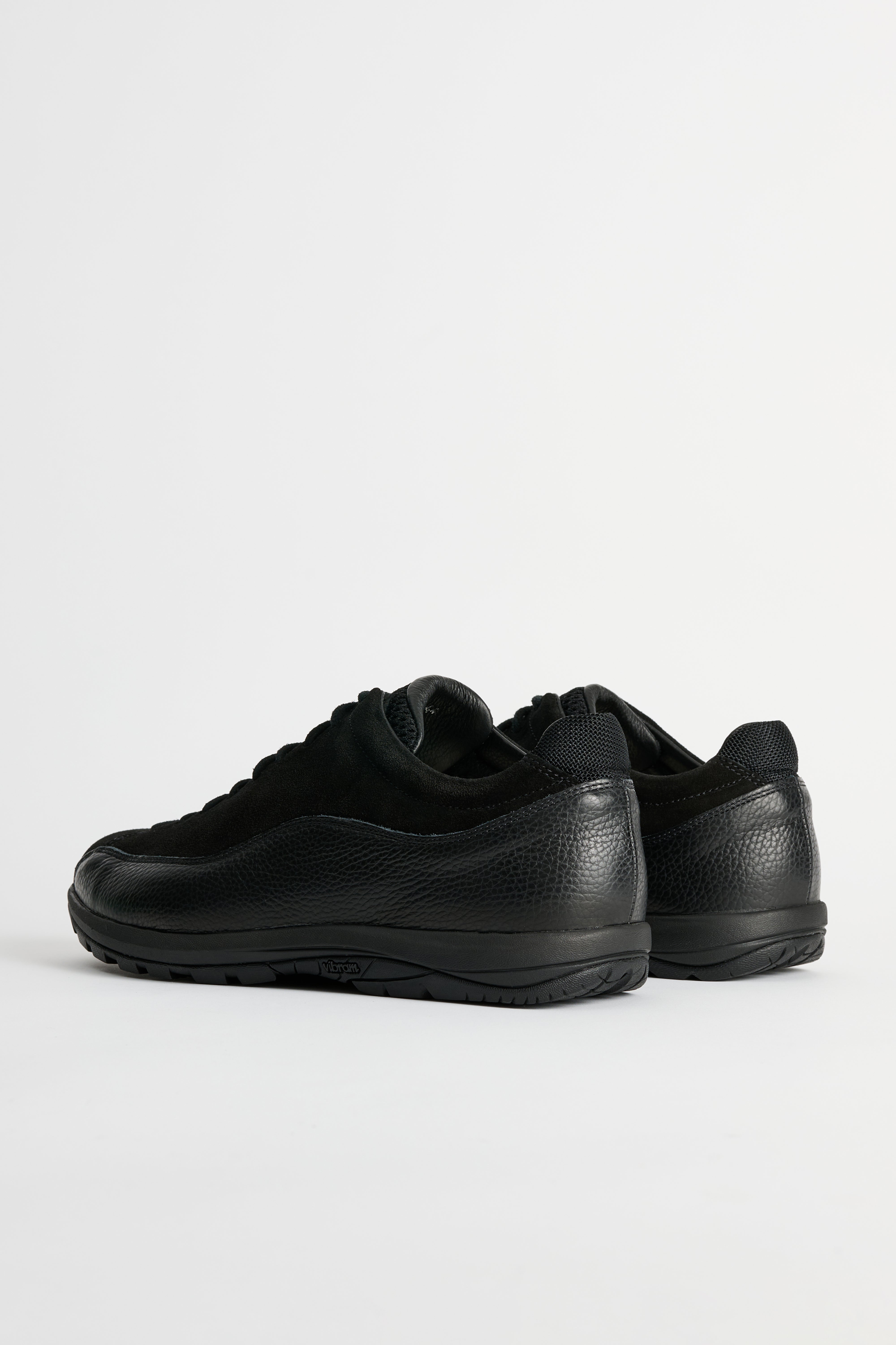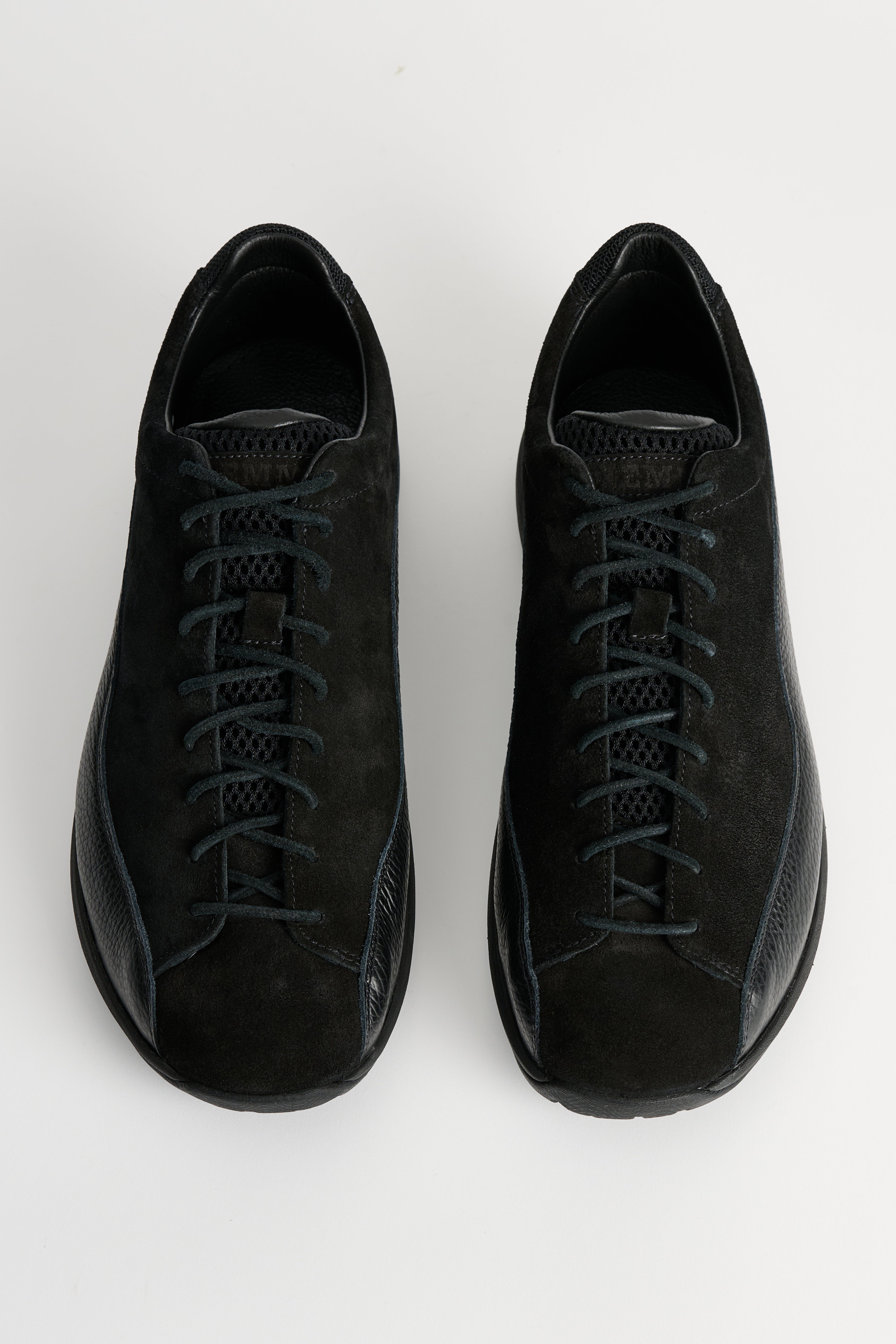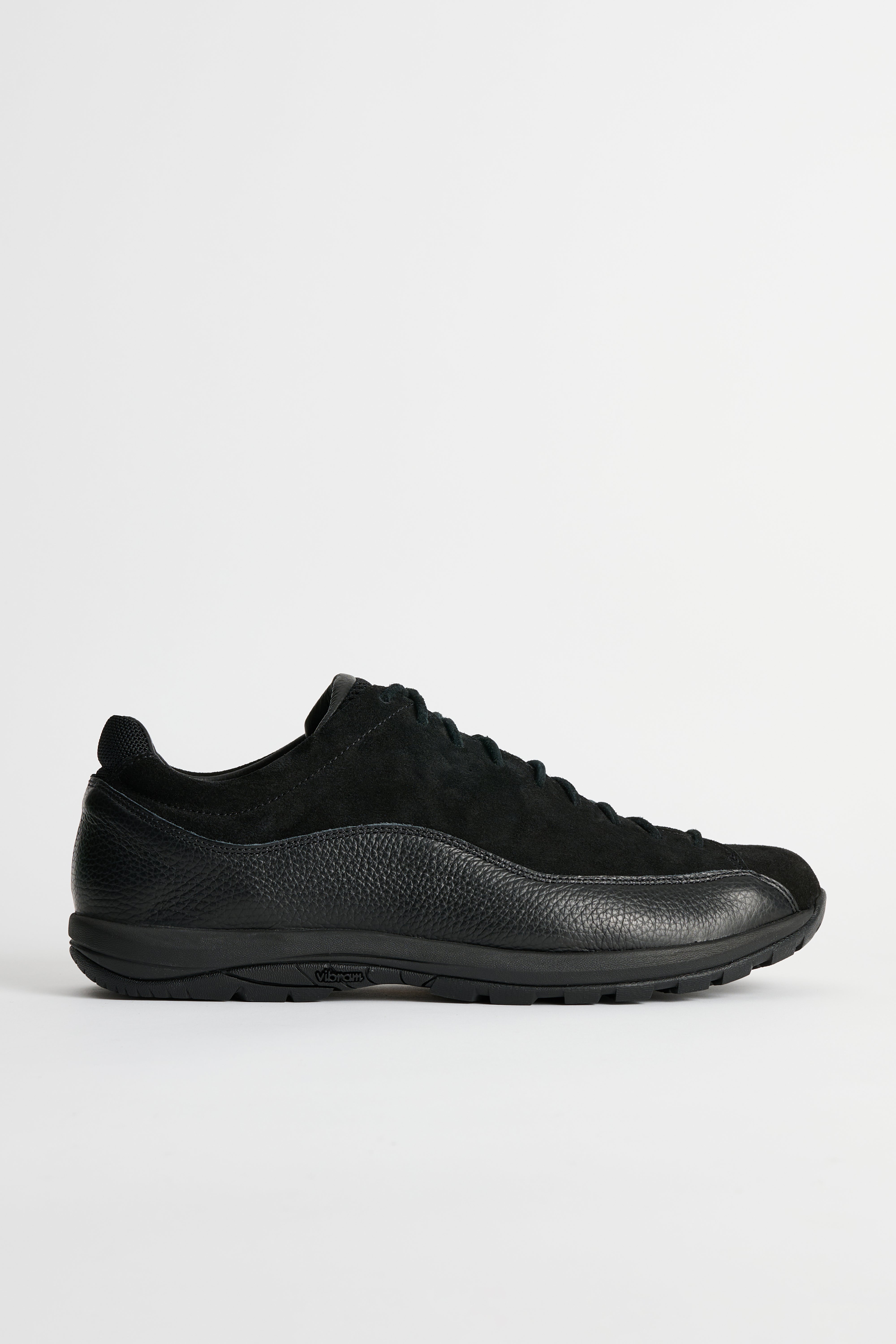 Sneaker from Diemme. Cut in black suede leather with a clean upper and tonal stitching. Features a lace-up front with flat laces and punched eyelets. A smooth heel tab carries subtle branding. Finished with a low-profile rubber cupsole in a matching tone.
