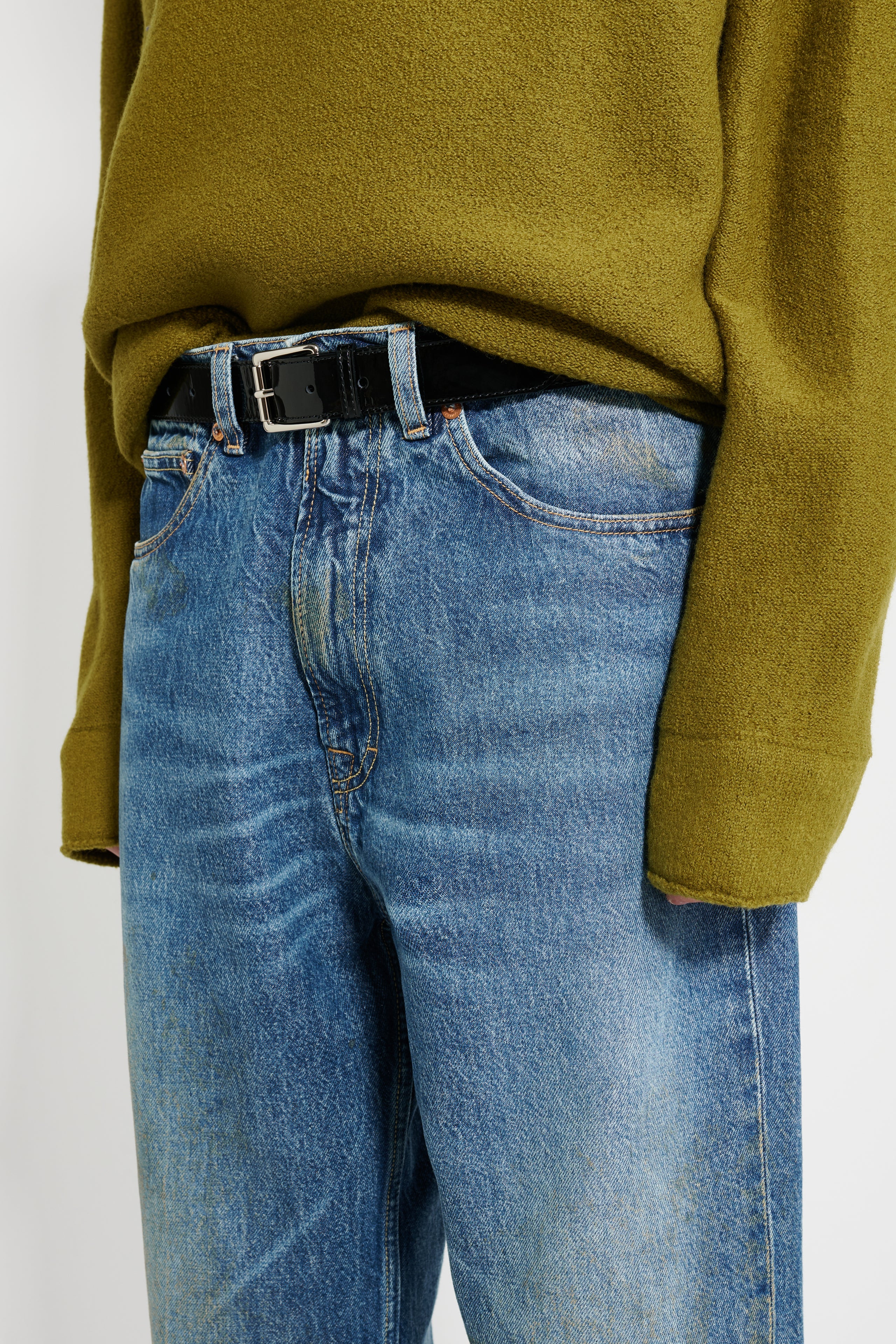 Jeans from Our Legacy. Made from vintage stain-washed Turkish denim with a hand-finished bleach process that makes each pair unique. Features a YKK zip fly, copper rivets, five pockets and reinforced back pockets. Designed in a relaxed fit with a wide straight leg with an embossed Our Legacy patch at the back.