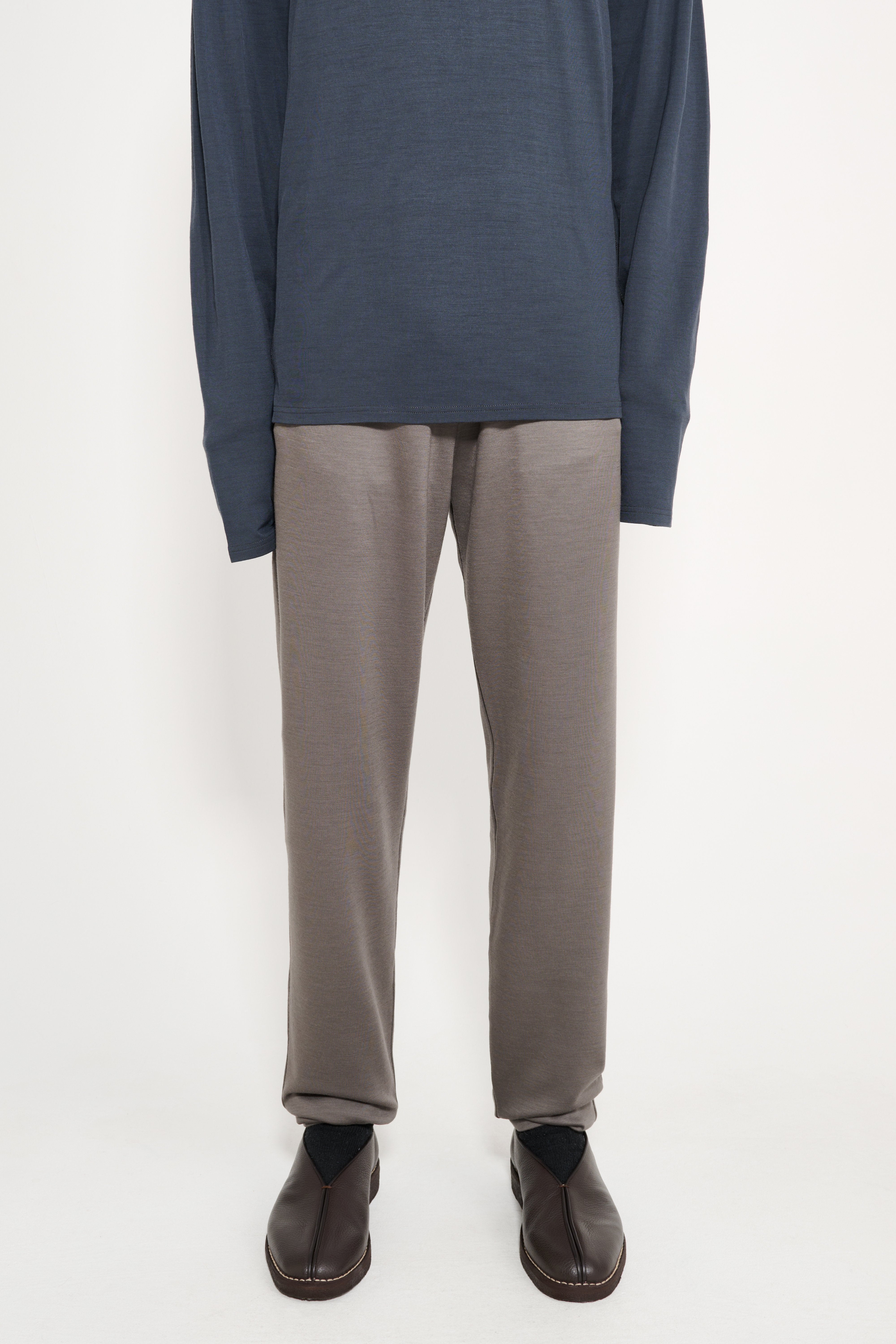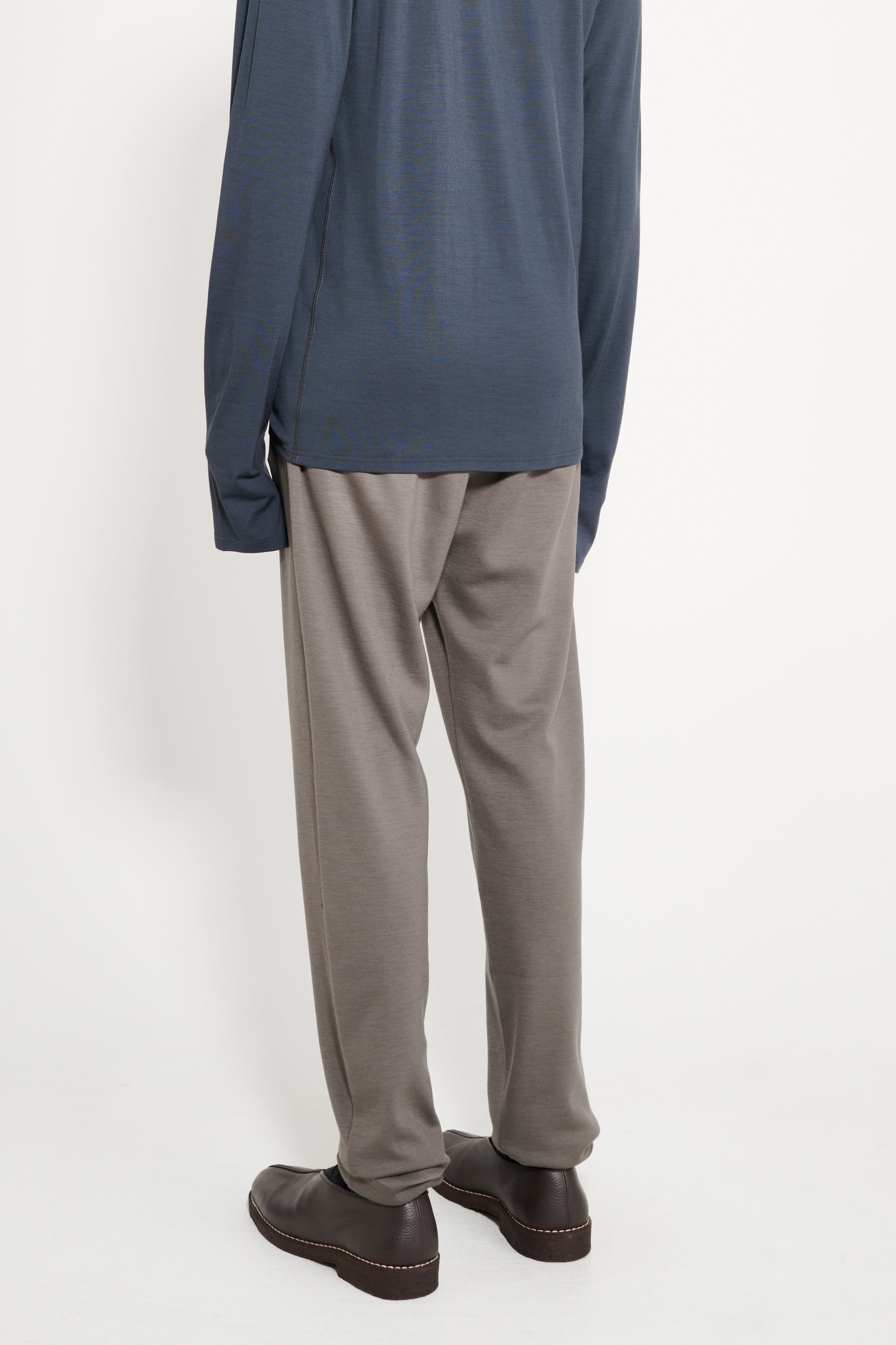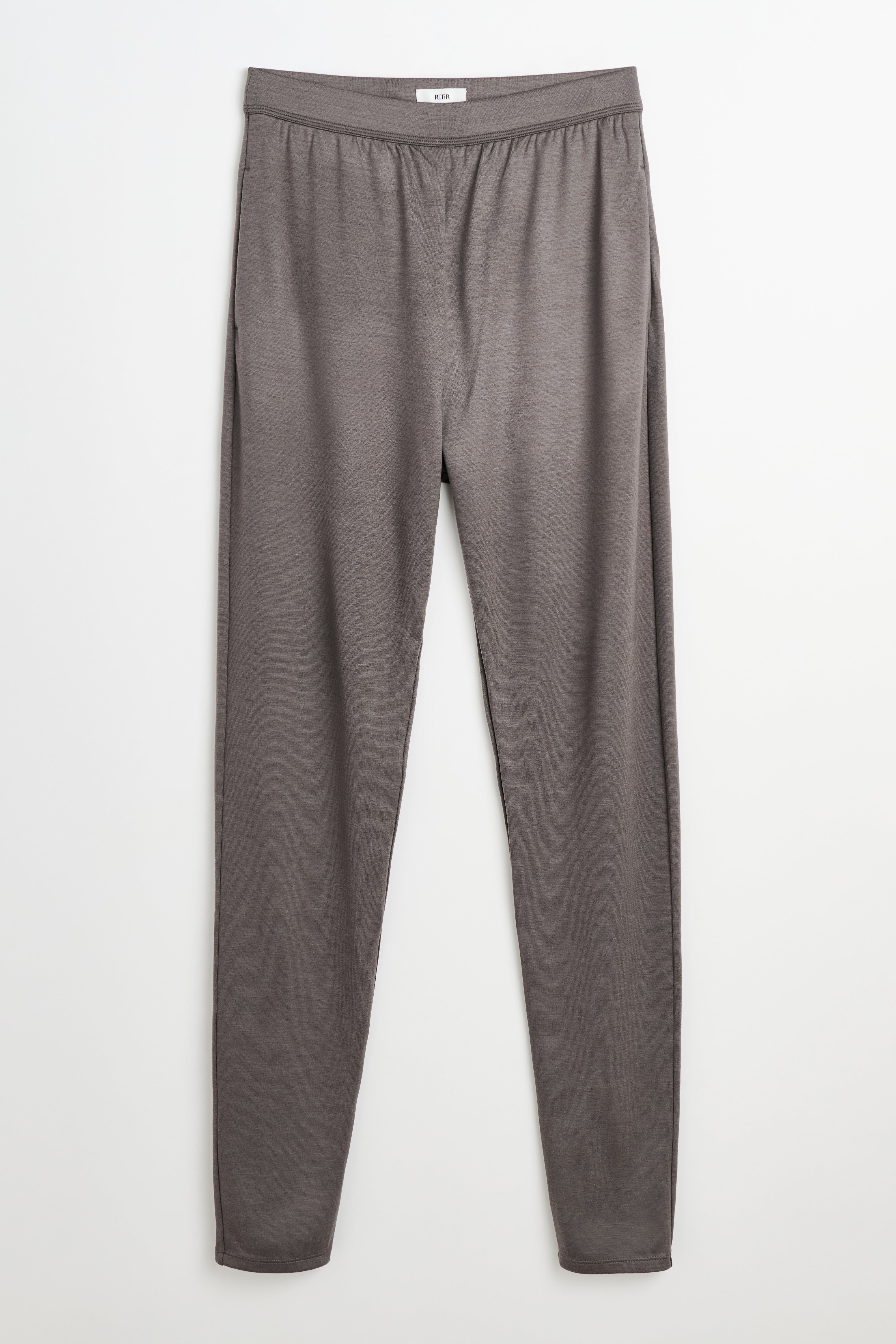Trousers from Rier. Made in Italy from extra fine wool interlock jersey, crafted by a historic 19th-century Italian manufacturer. Features a carrot-shaped silhouette, elastic waistband, narrow cuffs at the hem and two side pockets.
