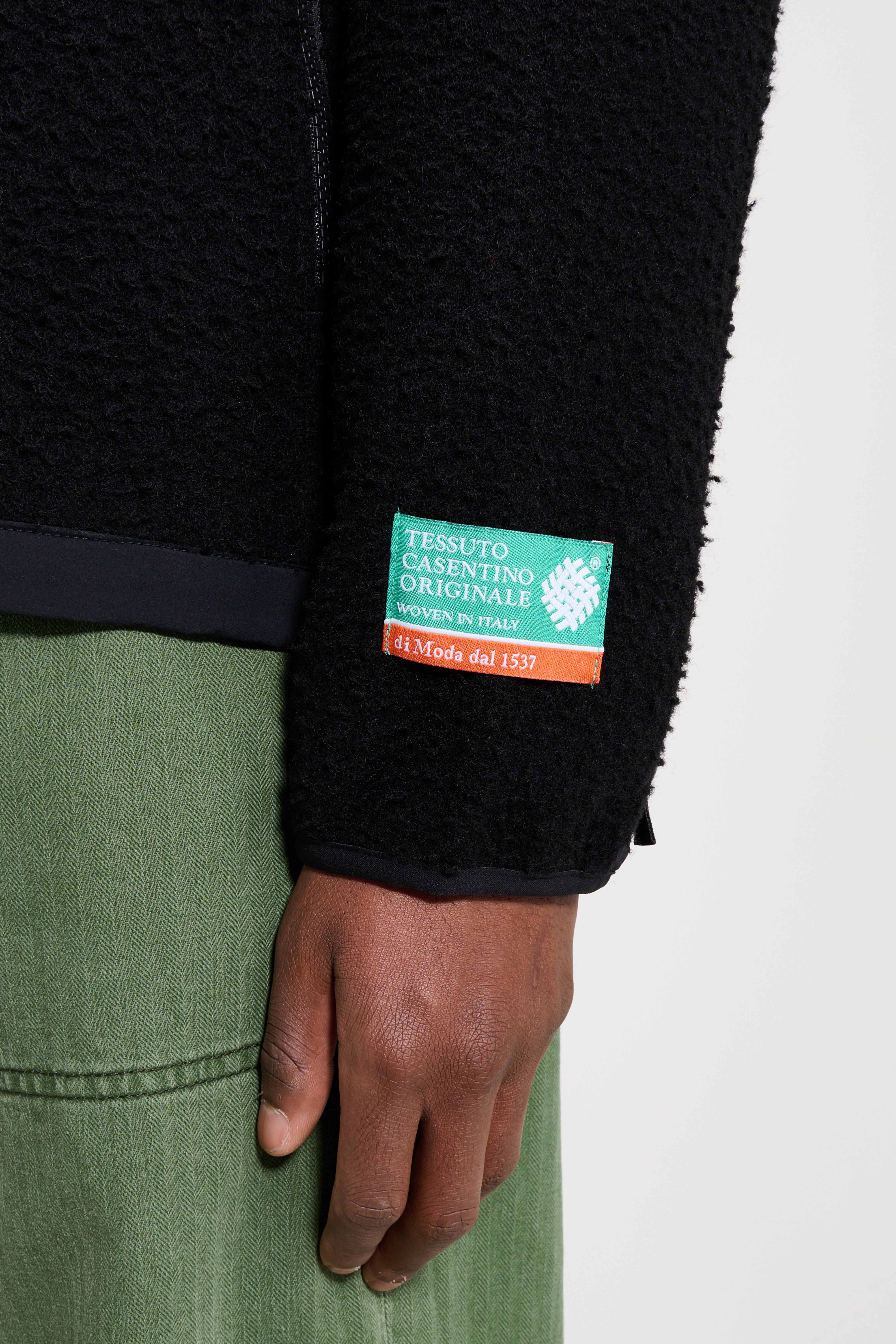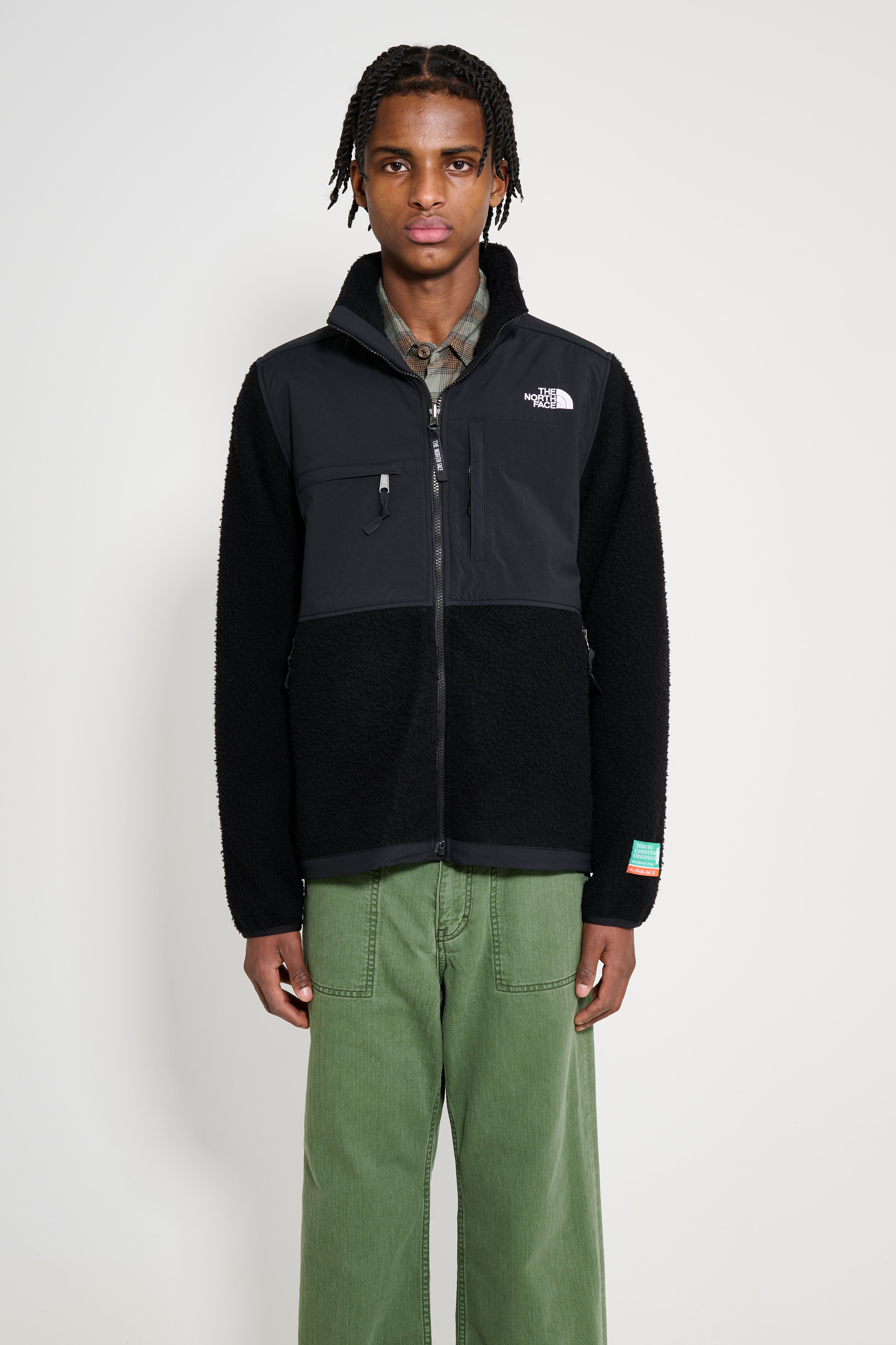 Denali jacket from The North Face. Casentino wool from Tuscany forms the textured body with WindWall overlay panels at the collar, chest, back yoke and lower sleeves. The front has an exposed zip with internal draft flap and pit-zip vents. Secure-zip chest and hand pockets, snap-closure cuffs and an adjustable hem with drawcord. Embroidered logos and an interior Casentino authenticity patch.
