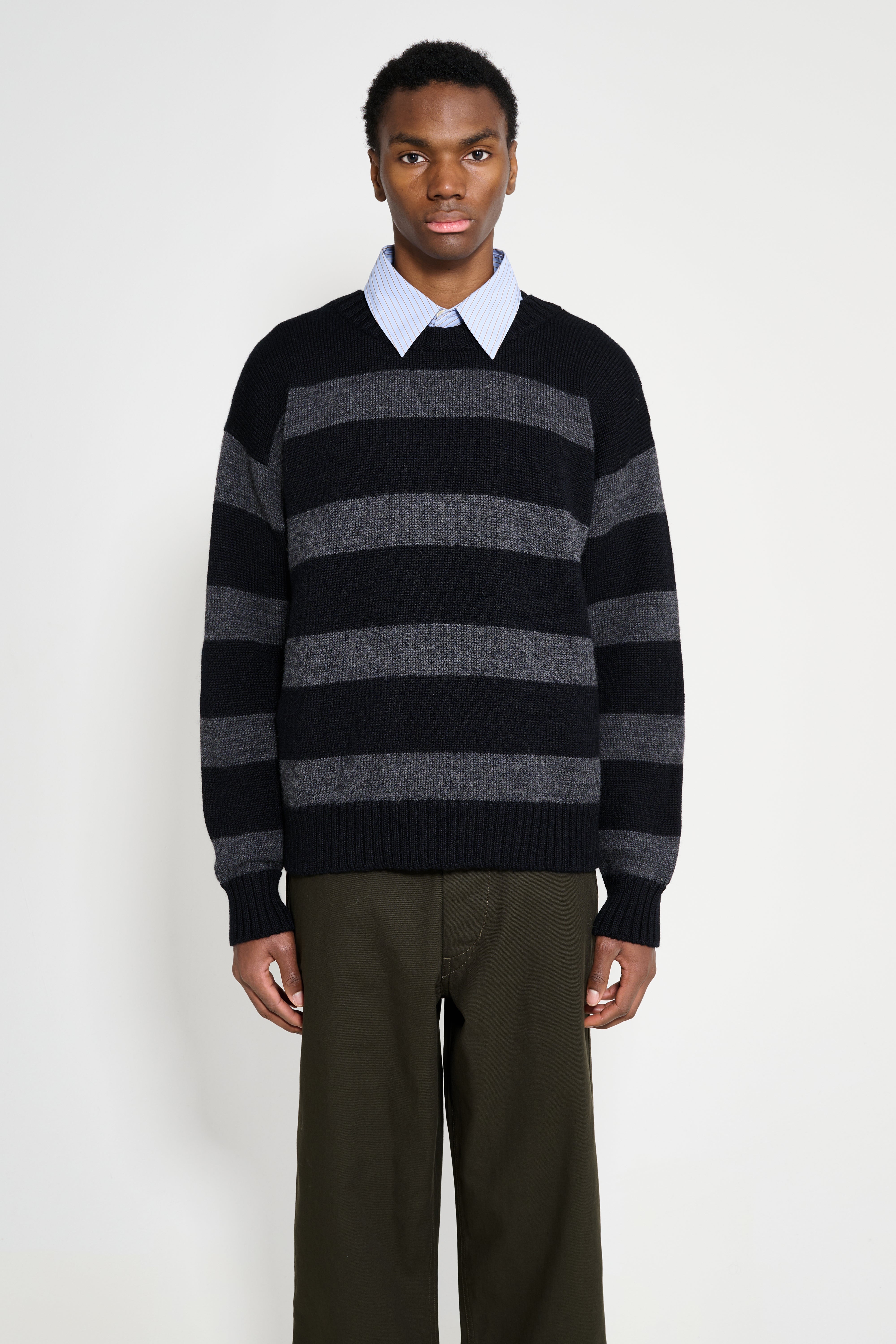 Margaret Howell MHL Graphic Striped Crew Black / Charcoal