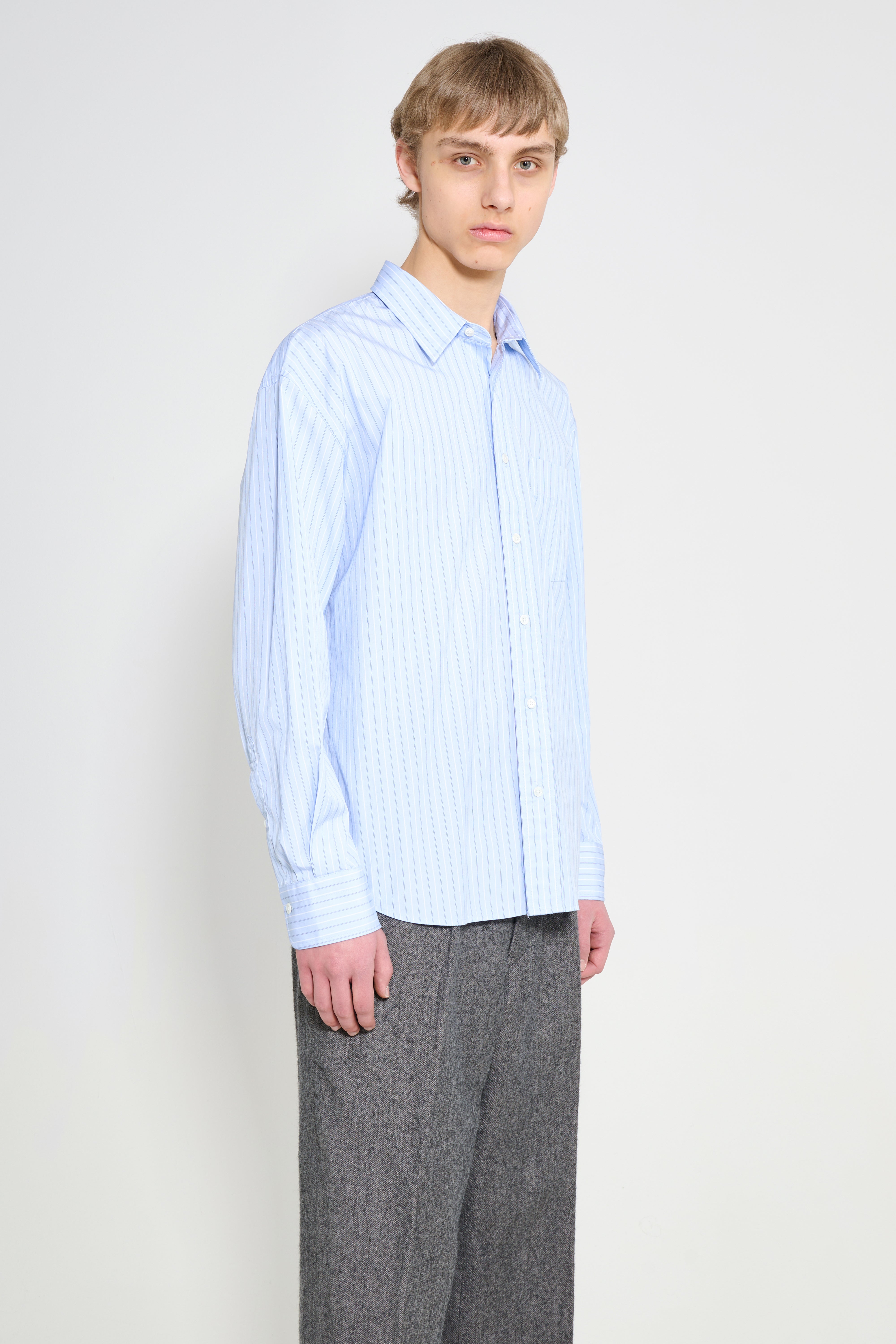 Button up shirt from Sunflower. Crafted from 100’s cotton poplin with a slightly oversized silhouette. Designed with a classic collar, locker loop and a box pleat at the back. The front closes with real mother-of-pearl buttons. Finished with a single chest pocket and adjustable cuffs.