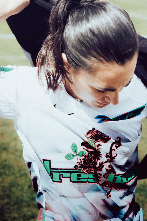 The TRÈS BIEN for Nike Vaporknit Home Game Jersey is a tribute to the city of Malmö, the home of TRÈS BIEN. Using the latest Nike Vaporknit Football Jersey Technology, it combines a distinct design with prints based on old city symbols. All artworks are created by Milan-based designer and TRÈS BIEN collaborator Daniel Sansavini.