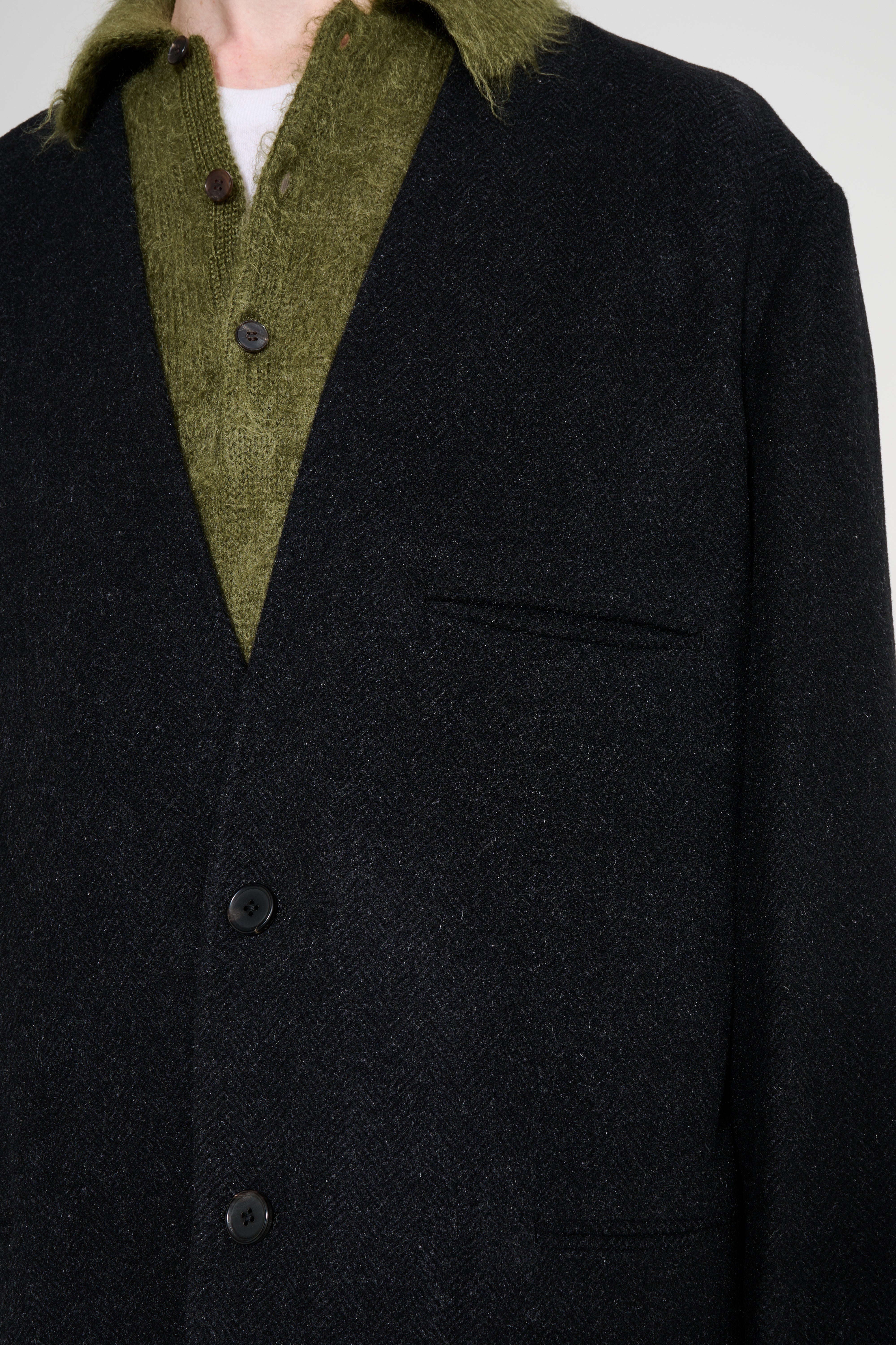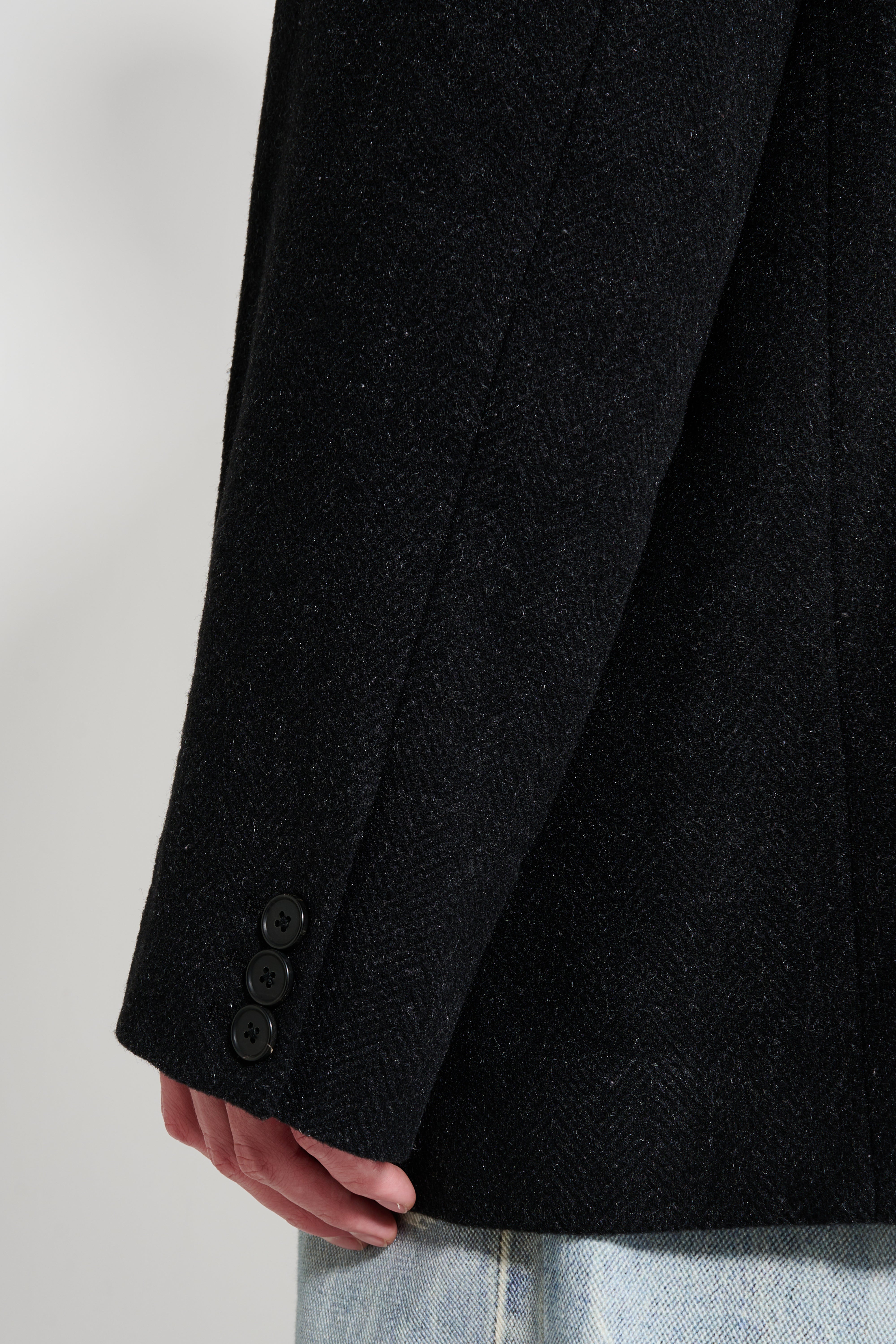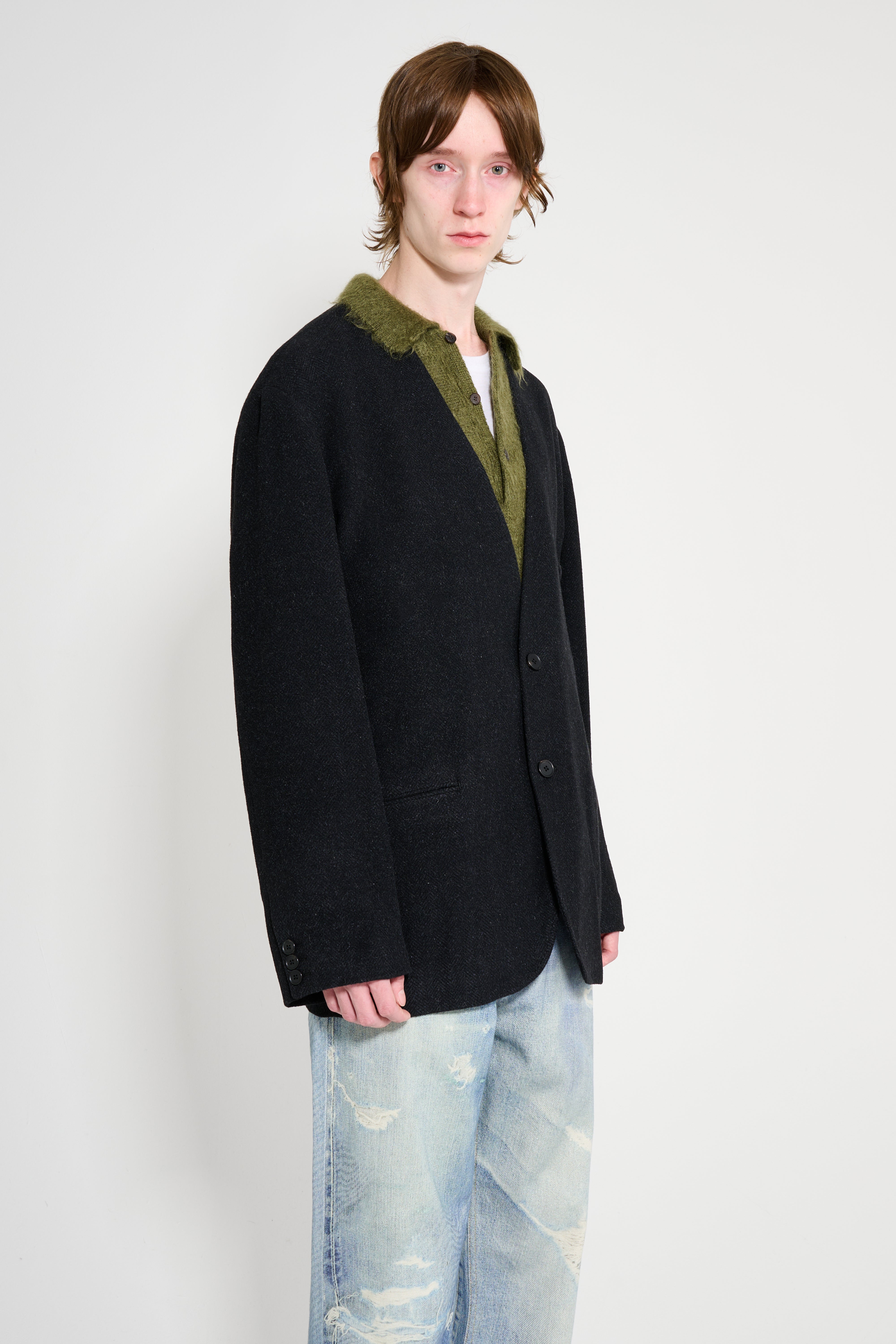 A.PRESSE Silk Cashmere Tweed Collarless Jacket Charcoal