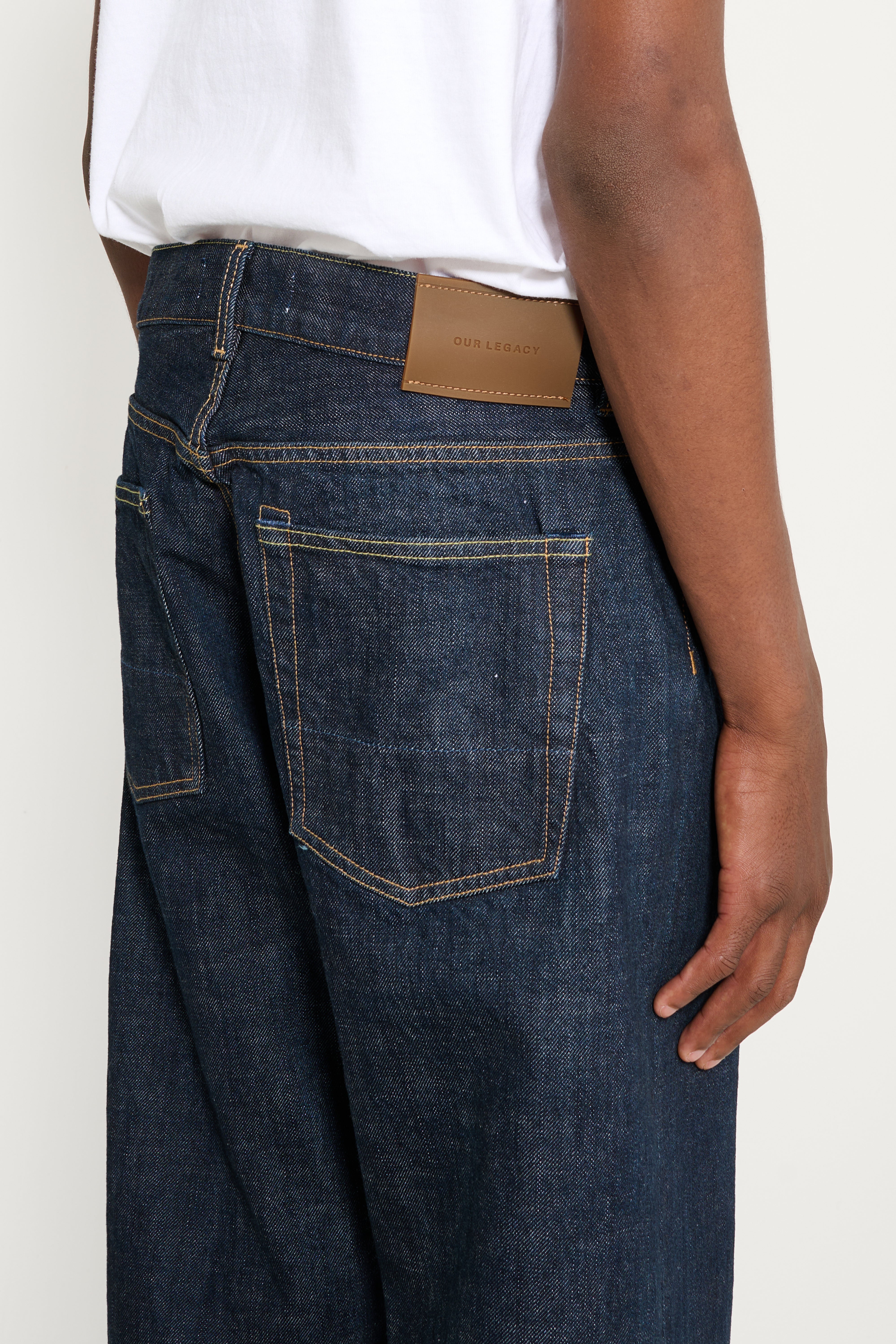 Jeans from Our Legacy. Made from indigo-dyed Italian selvedge denim. Features five-pocket styling with reinforced back pockets, YKK zip fly, metal rivets, and a rubber Our Legacy patch at the waist.