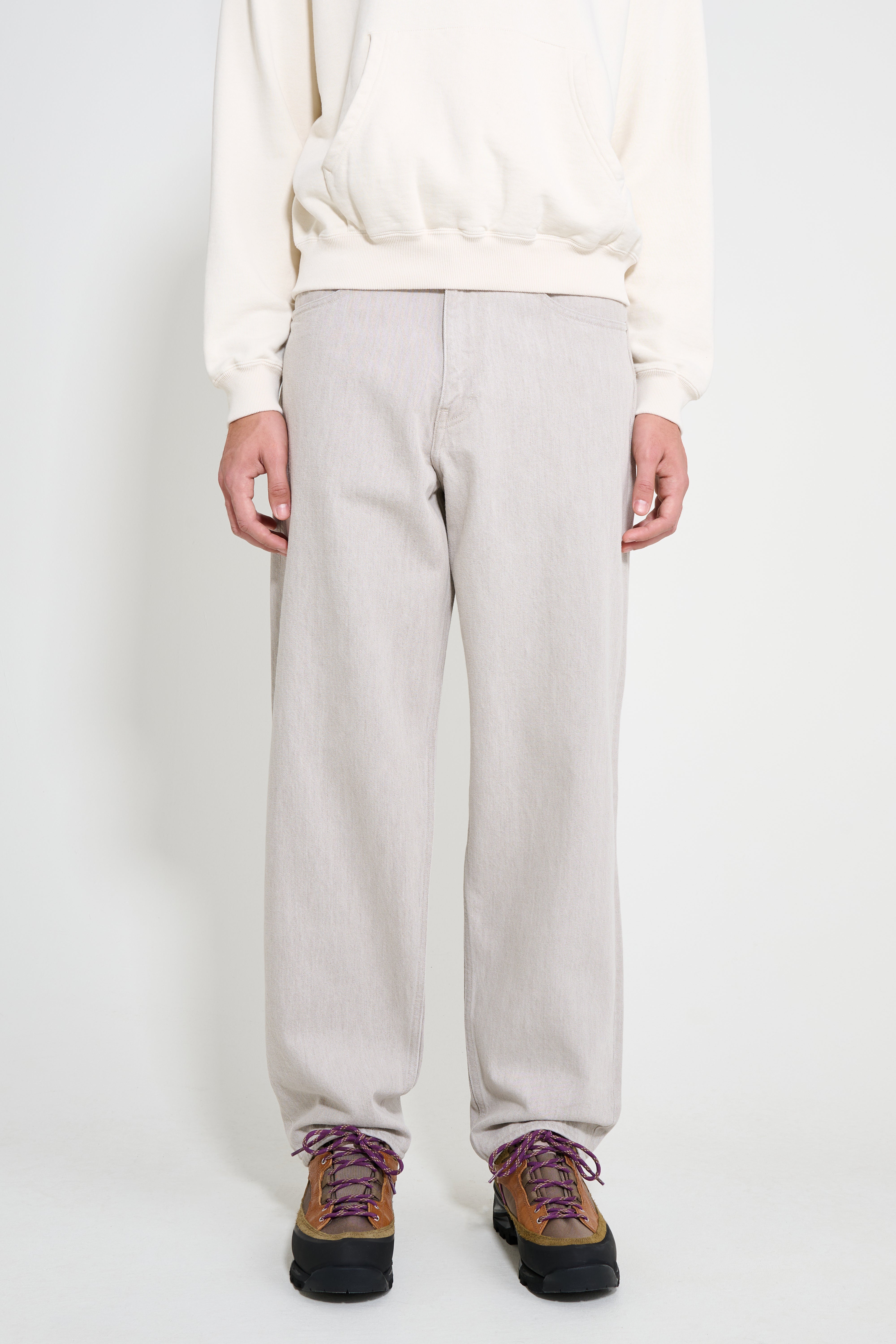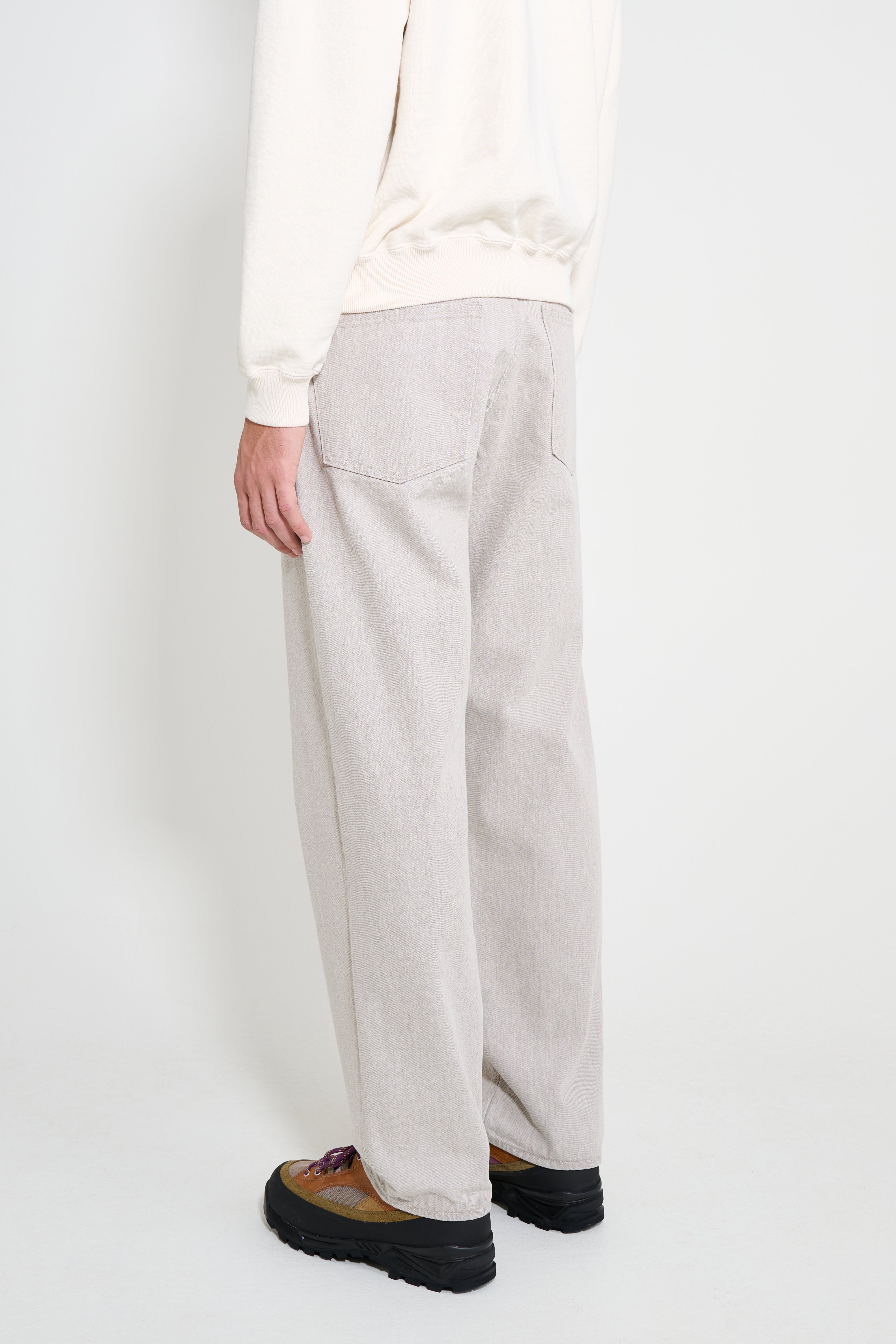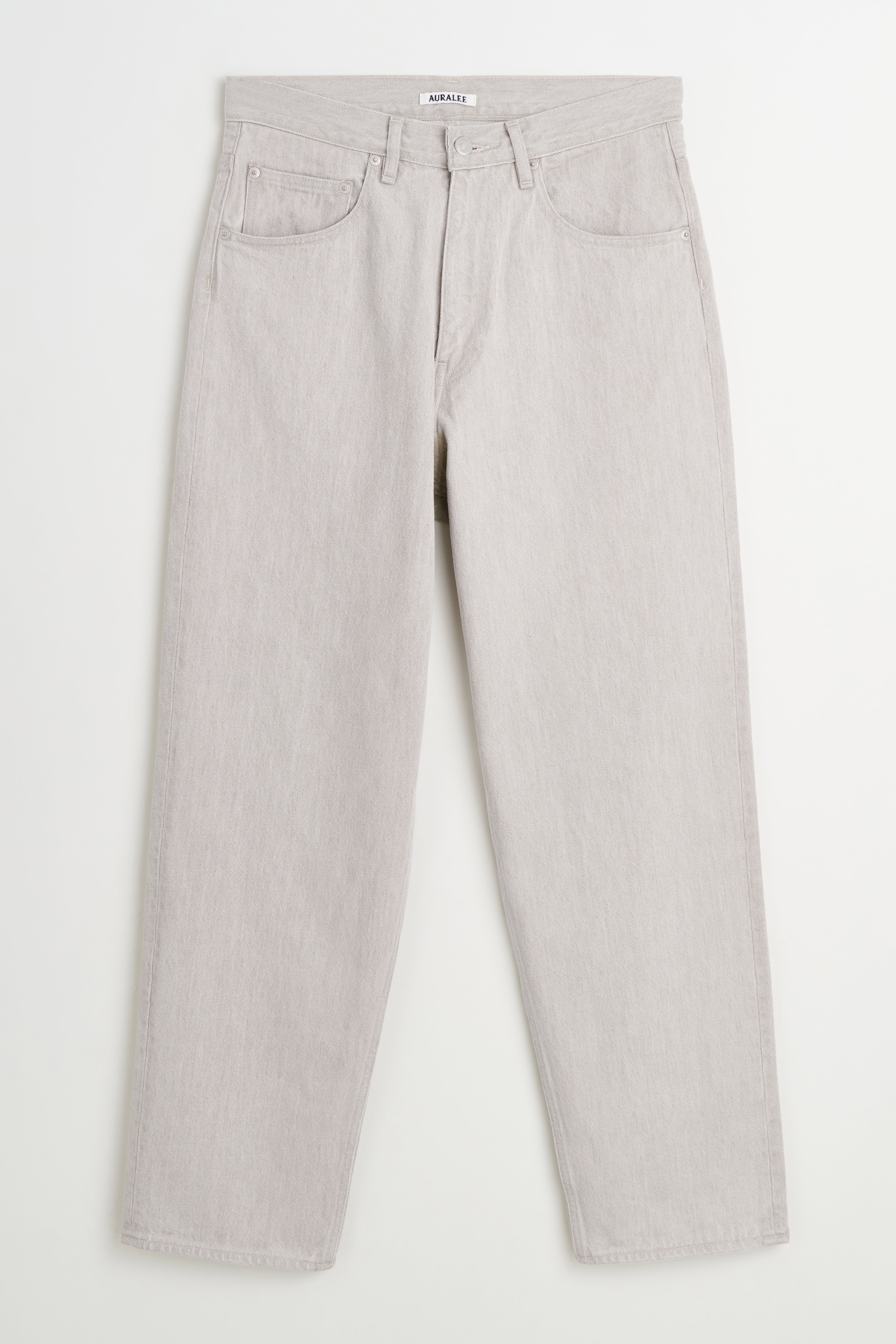 Wide pants from Auralee. Made in Japan and cut from hard-twist cotton denim developed to retain a crisp, dry handle after repeated wear. The rope-dyed indigo warp and processing create a light gray tone with brown depth. Designed in a wide block that tapers gently to the hem with a natural stretch sensation.