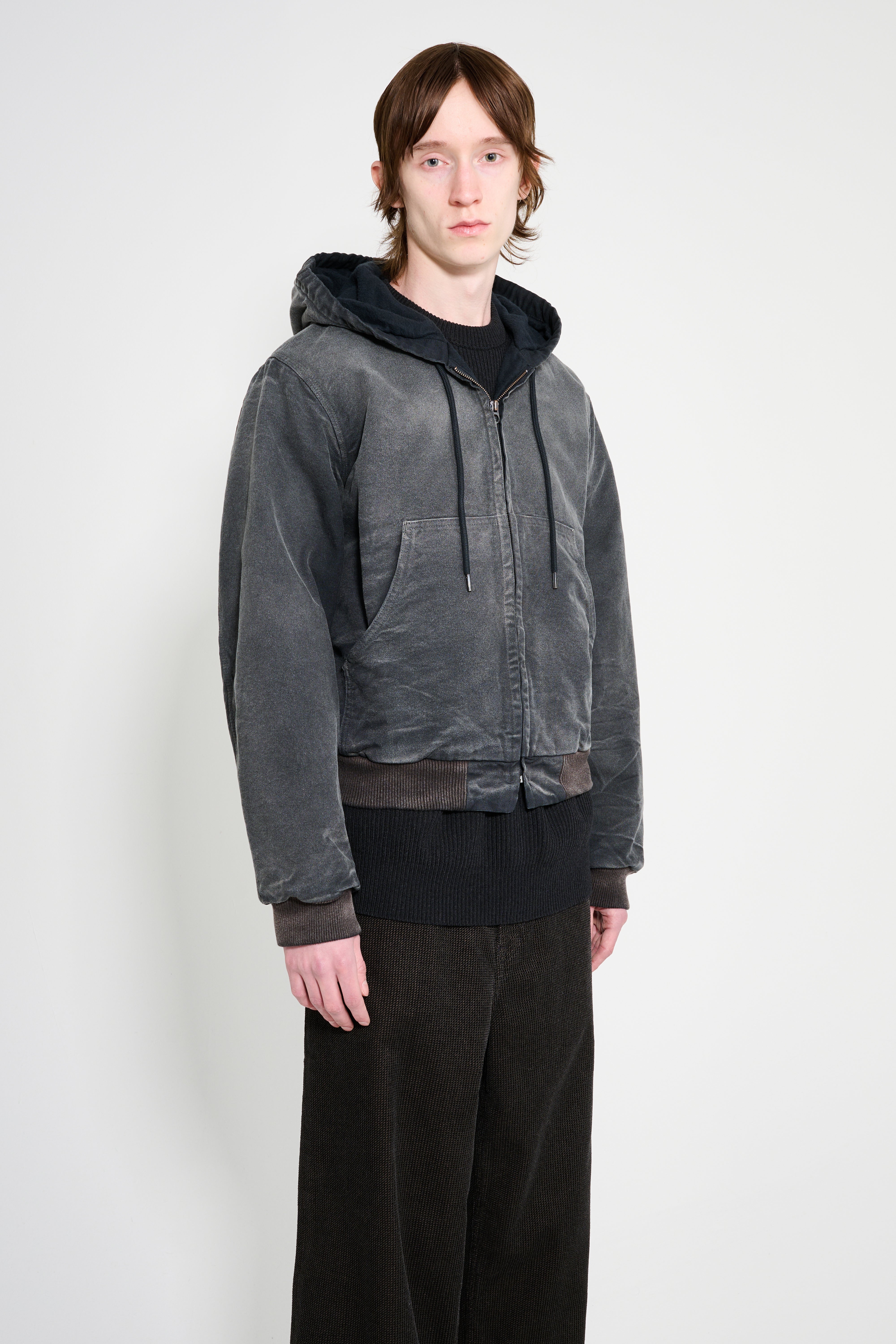 Auralee Product Dyed Organic Cotton Duck Short Zip Parka Faded Black