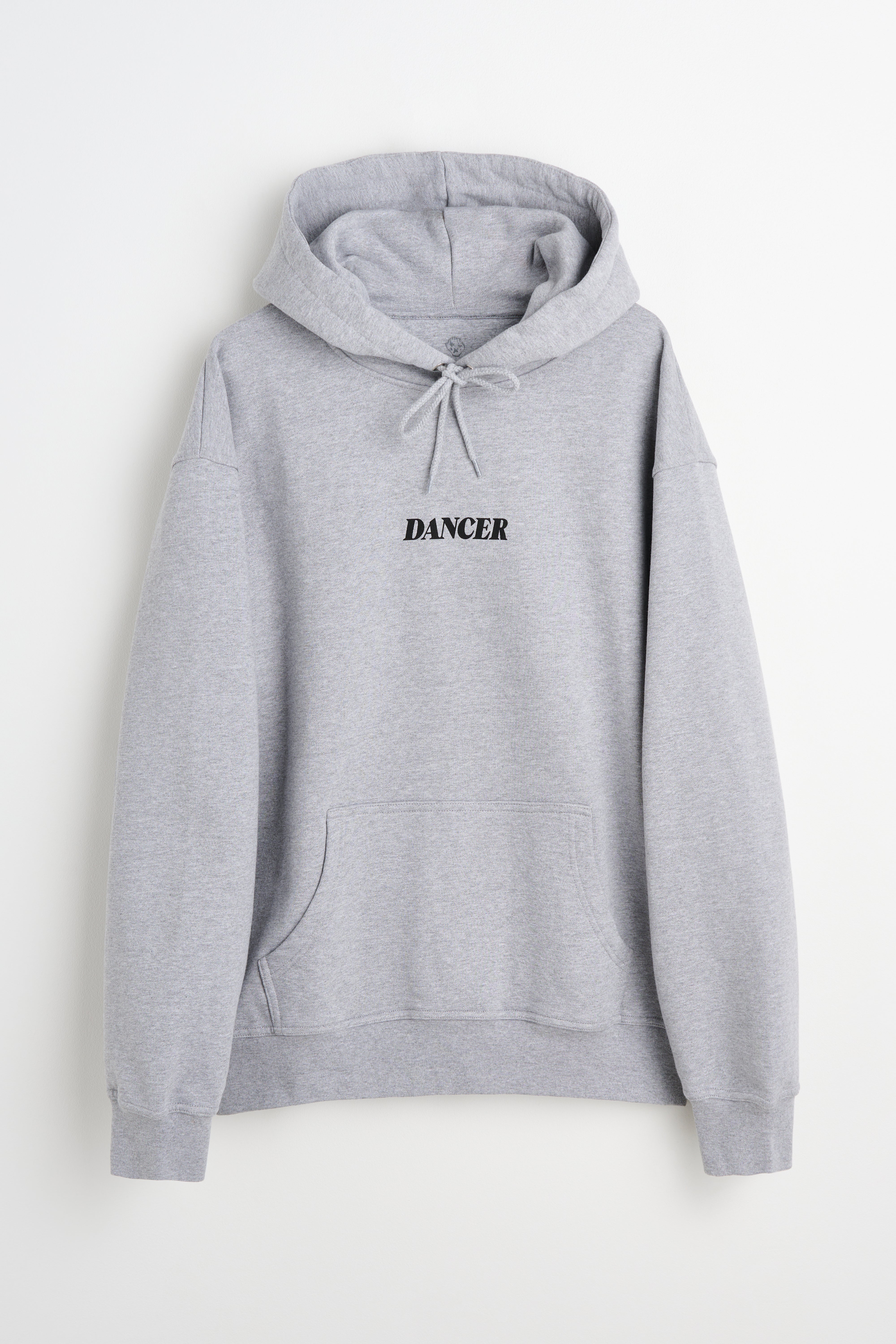 Hooded sweatshirt from Dancer. Constructed from midweight cotton fleece with a relaxed torso and set-in sleeves. Finished with an italic logo graphic, front kangaroo pocket, and ribbed trims at the cuffs and hem. Adjustable hood with drawcords and a straight hem. No print on the back.