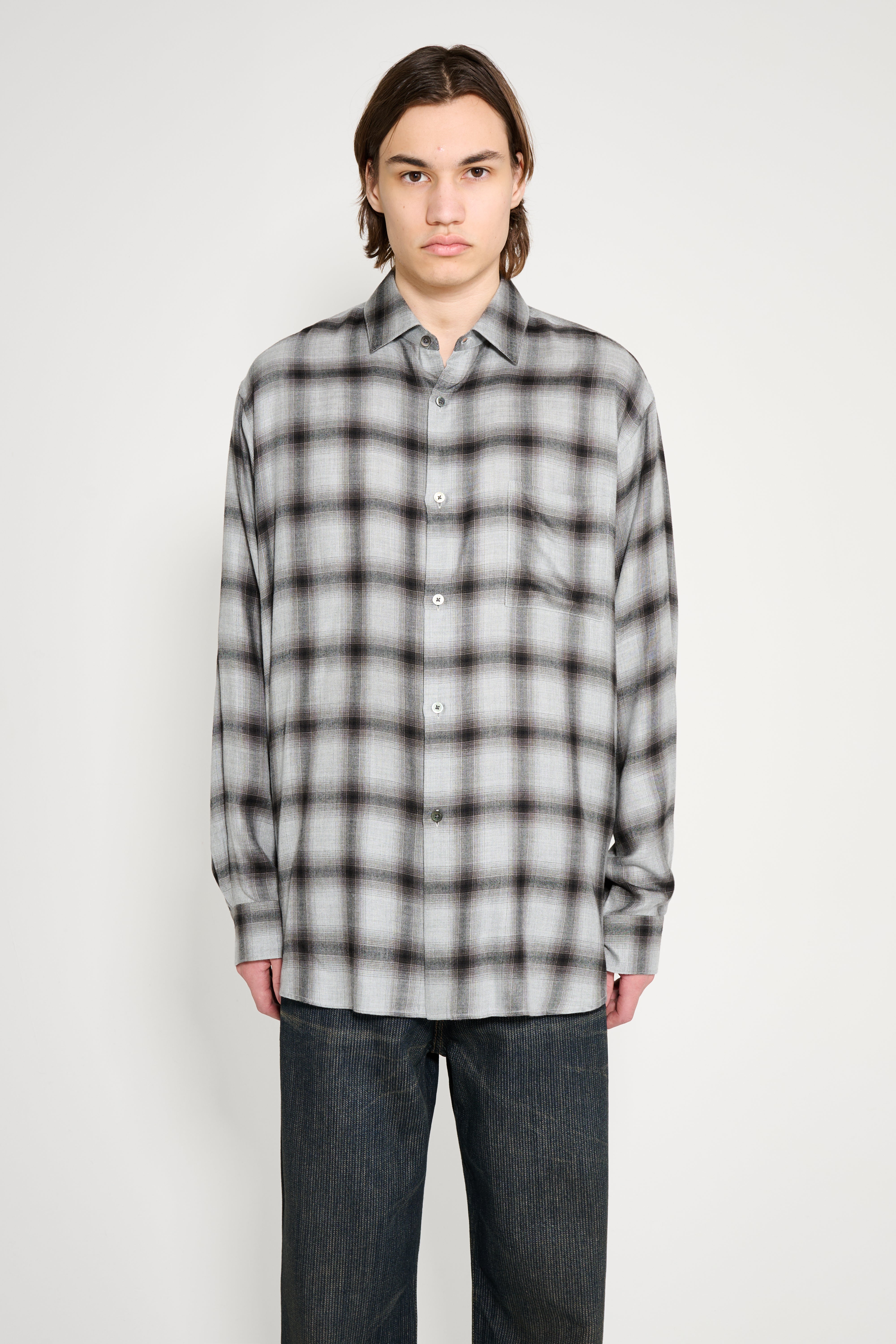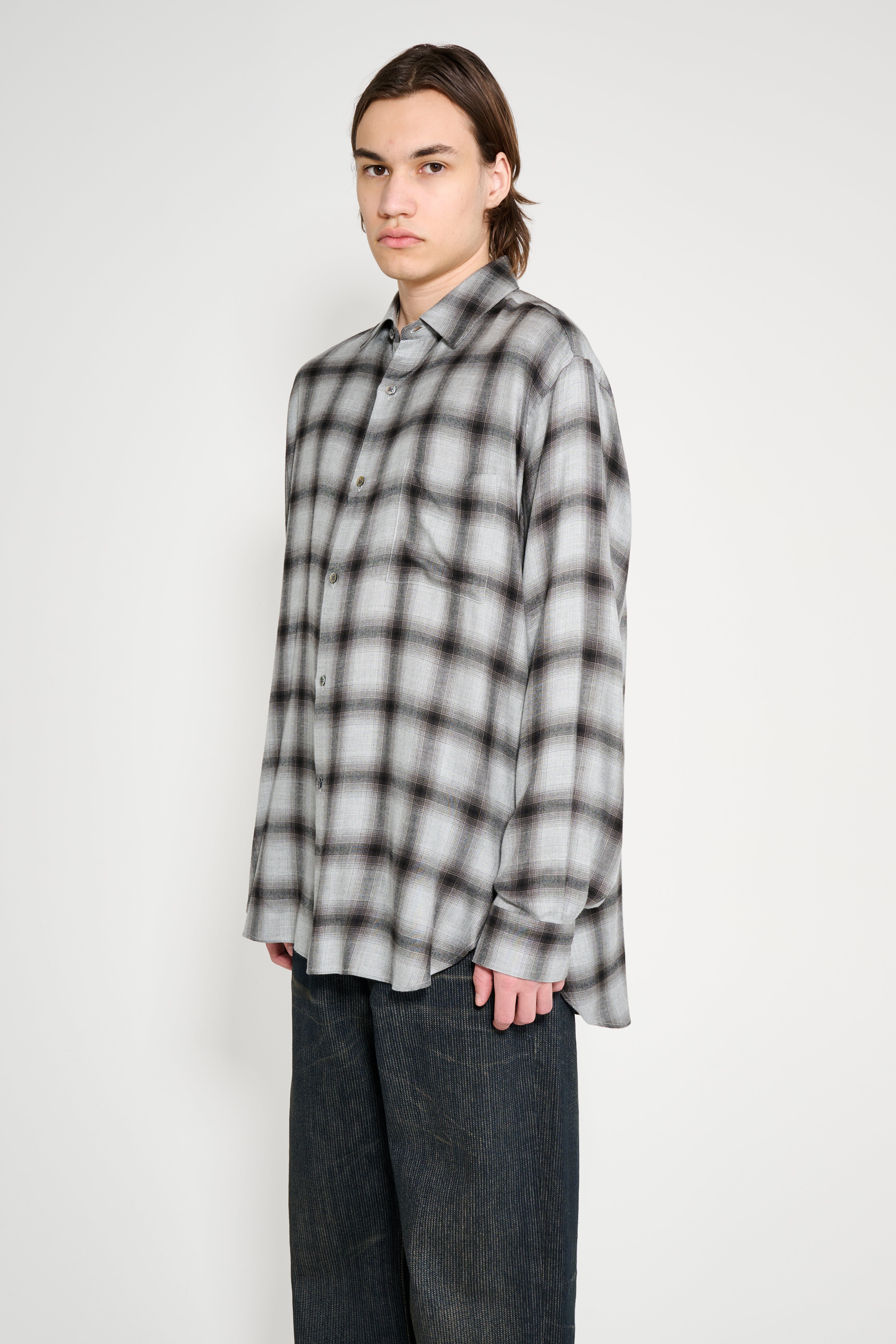 ssstein Rayon / Lyocell Check Oversized Down Pat Shirt Black Ombre