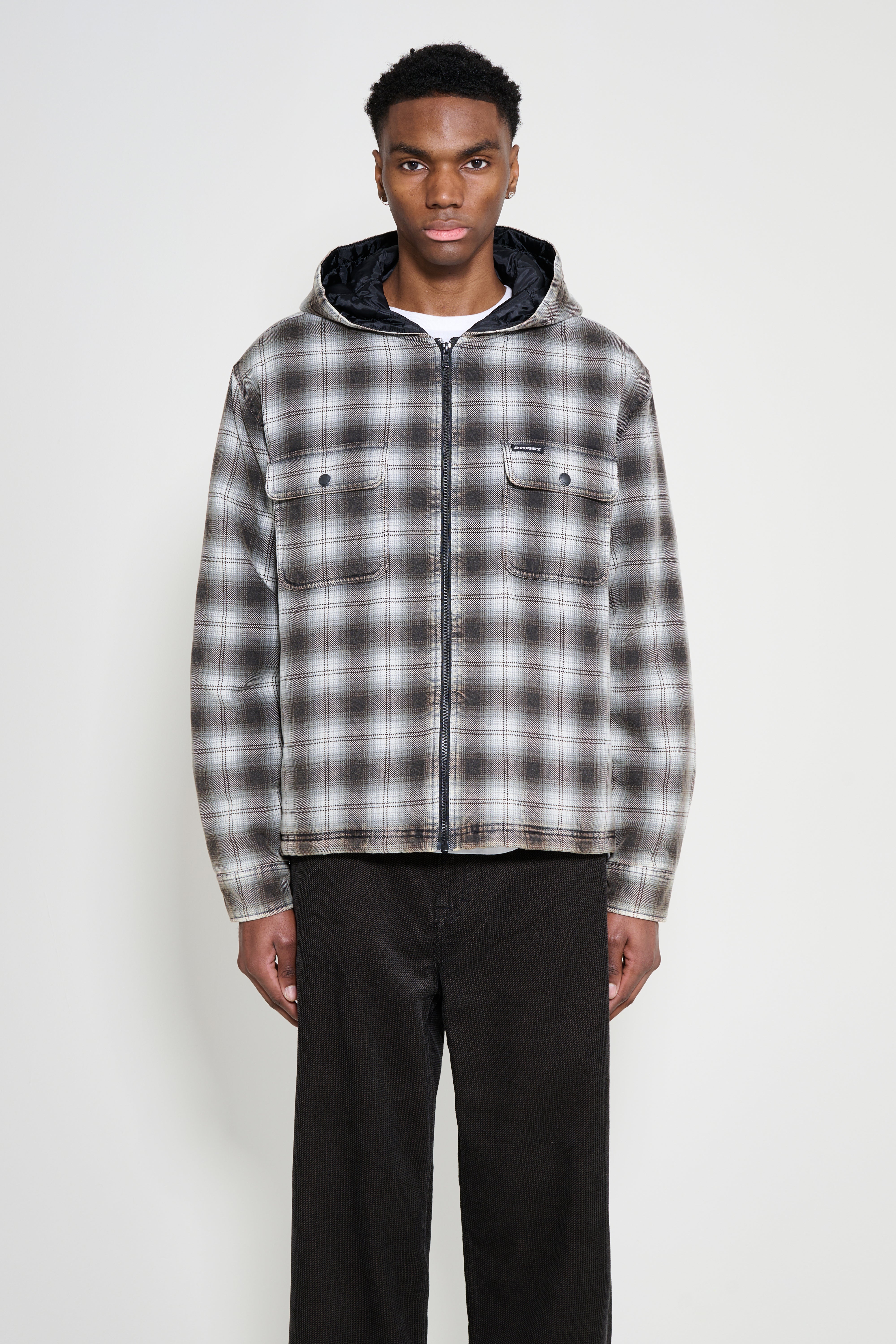 Stüssy Zip Hooded Plaid Shirt Charcoal