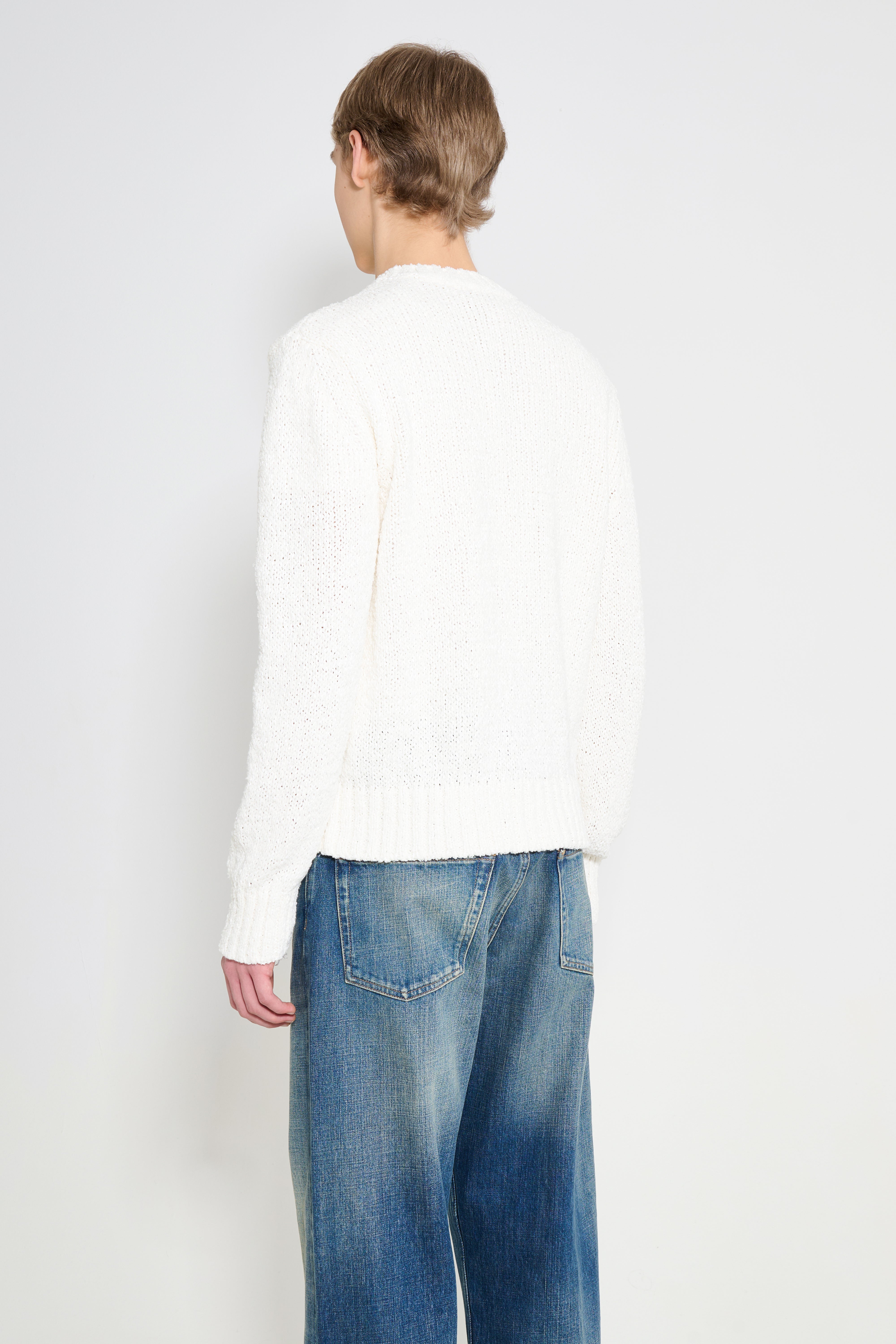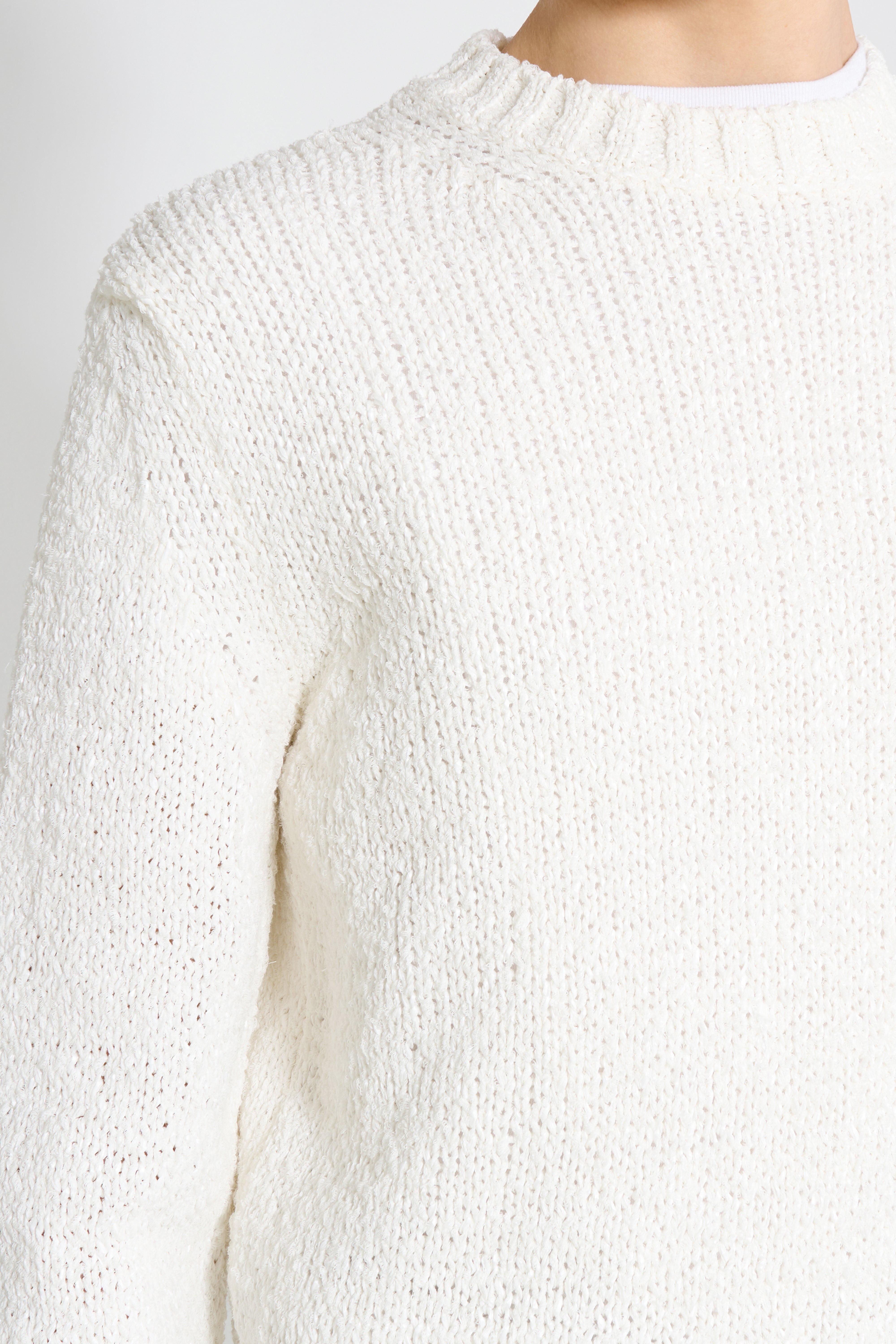 Crew neck sweater from Sunflower. Knitted in Italian twisted cotton yarn with a substantial texture and soft hand. The silhouette is regular with slightly dropped shoulders. Finished with ribbed trim at the neckline, cuffs and hem.